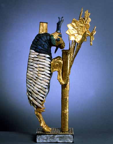 Termino el post con el gran descubrimiento realizado en el año 1922 del Cementerio Real de Ur de la mano del equipo del arqueólogo inglés Sir Leonard Woolley, en una misión de excavación conjunta entre el Museo Británico de Londres y la Universidad de Pensilvania. El gran hallazgo sacó a la luz una necrópolis con 16 tumbas reales de la Primera Dinastía de Ur, sus ajuares funerarios contenían un importante número de objetos de gran valor realizados en oro, plata, nácar y lapislázuli. Había arcas, liras, barcos, copas y todo tipo de joyas. De entre todas ellas una destacó por encima de las demás; se trata del Carnero encaramado al Árbol de la Vida. Figura hecha en oro, plata y lapislázuli, pieza de carácter ceremonial, formaba conjunto con otra modelada en oro y rodeada de trabajo de taracea: El Arpa Real con Cabeza de Toro, perteneciente al séquito de la reina Puabi. Otra pieza importante fue el Casco de Meskalamdug hoy desaparecido tras el expolio que sufrió en el año 2003 el Museo de Bagdag en el transcurso de la Guerra de Irak. El casco reproducía un tocado ceremonial principesco a base de un elaborado peinado. Semejante maestría podía percibirse en el Tocado de la reina Puabi. Por último y no por ello menos importante, se halló el famoso Estandarte de Ur pieza de pequeño tamaño decorada por ambas caras a través de dos panales: los llamados «panel de la guerra» y el «panel de la paz», los cuales incluían escenas donde se narraba una victoria militar y una fiesta o banquete. De nuevo se recurre a la técnica de los registros superpuestos.