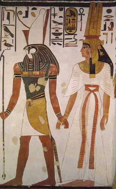 Las pinturas que van a destacar en el Imperio Nuevo de Egipto serán las de las necrópolis. Estas composiciones decoraron las tumbas de los reyes y de los altos dignatarios de las ciudades de Tebas y Menfis; poseen una gran calidad y fueron realizadas por auténticos maestros. Las escenas fueron ganando en composición y se fueron perfeccionando el estilo en referencia al tratamiento otorgado al cuerpo humano en comparación con las épocas anteriores. Las formas de las figuras se alargan, la pose es más flexible y los colores están sin duda, mucho más logrados. Además, a partir de la época de Amenofis III tenemos un movimiento en las escenas cada vez más presente. El exotismo, la riqueza y el lujo de esta floreciente época, se pusieron de manifiesto en la gran profusión de joyas y detalles que vemos en las elegantes vestimentas y tocados de las damas egipcias.